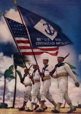 修设营的仪仗队第 80 水师。被称为海蜂的两个非裔美国营中的第二个第 80 届 CB 是水师修设部队中。海蜂博物馆供给/ 美国水师,共享资维基源