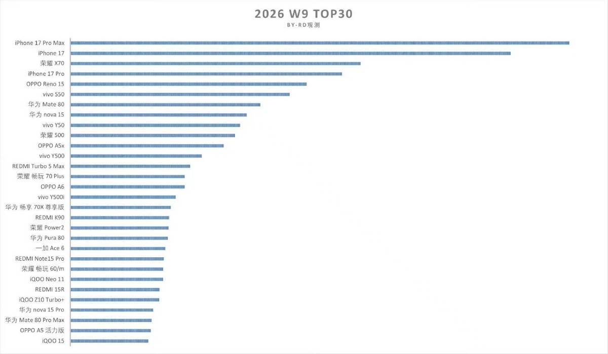 来不缺新机手机商场从,长久站稳脚跟的机型但真正能正在销量榜上,并不多实在。近最,机销量排行榜正式通告2026年第九周的手,单来看从榜,兴趣:苹果仍旧强势举座方式照旧尽头有,正正在敏捷追逐但国产物牌,和性价比商场格表是正在中端,渐成为主导力气国产机仍旧逐。