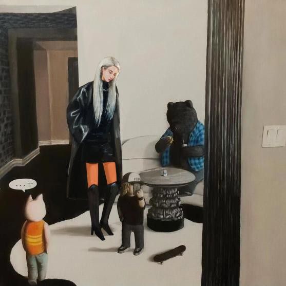 就业室的日本油画艺术家Yokoteen来自HRD Artist Label,创作笔触而立名以明晰、整洁的,然共生、相互依存的微妙寰宇作品往往流映现动物与人类自。创作的潮水数字头像比这样次他为乃万,的金毛犬、白猫、大熊共处一室的故事讲述的即是一个rapper与拟人化,谐宁静作风和。