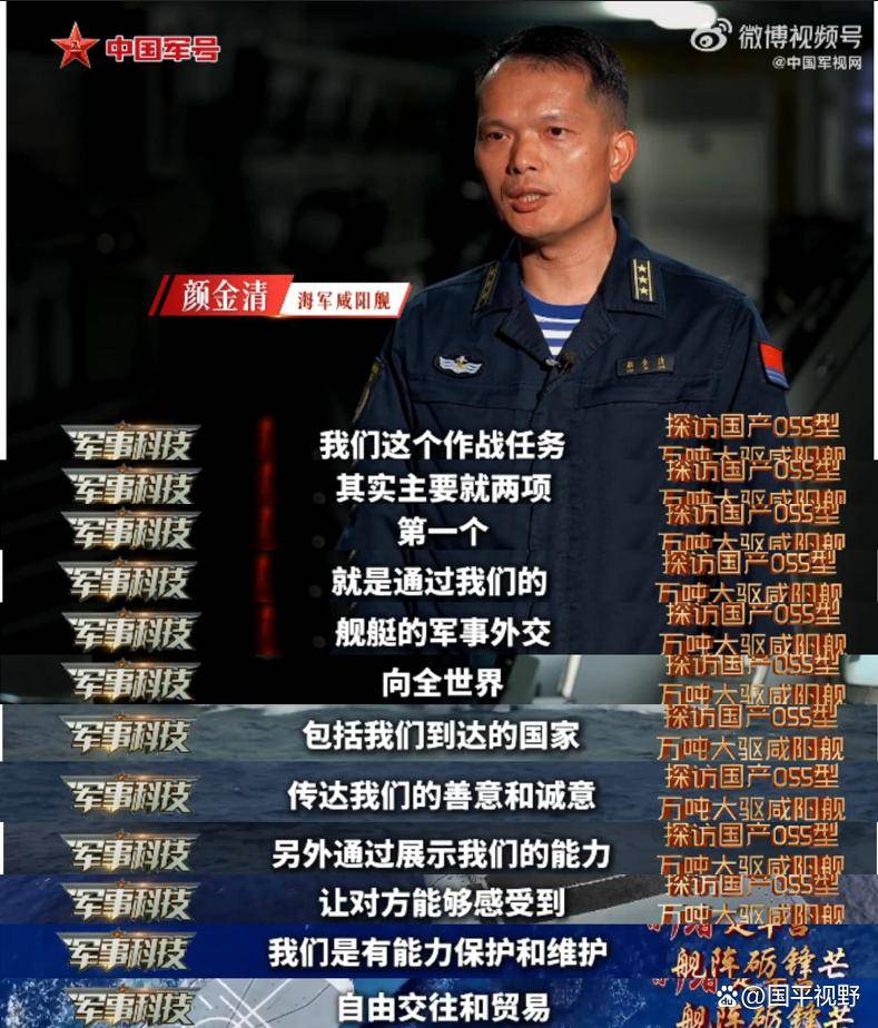 3日2月,科技》栏目播出的节目中间视国防军事频道《军事,舰上校军官称:“咱们这个作战义务受访的055型万吨大驱108咸阳,让对方感触到咱们是有本领庇护和保护自正在交易和营业原来重要就两项......此表通过出现咱们的本领。”